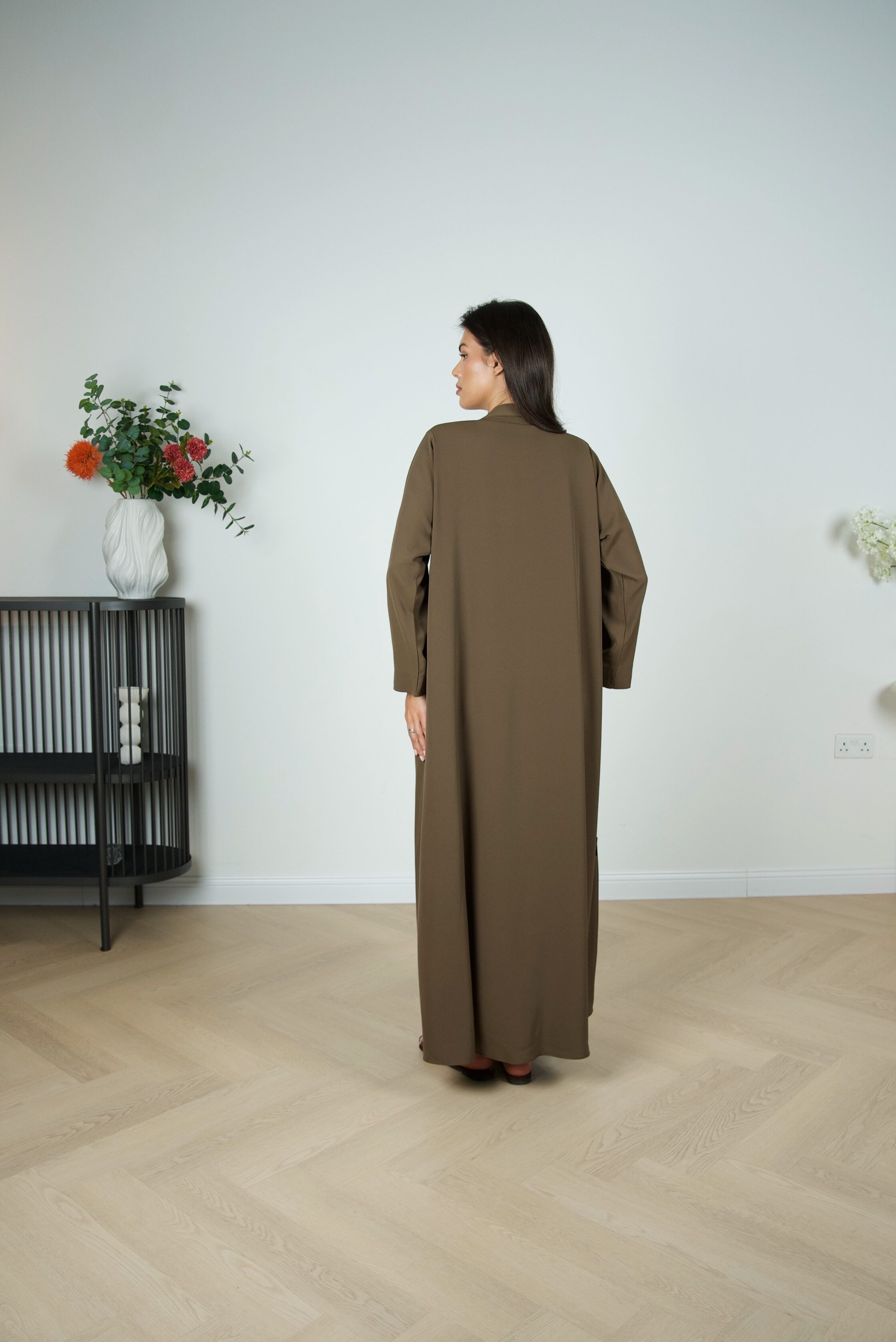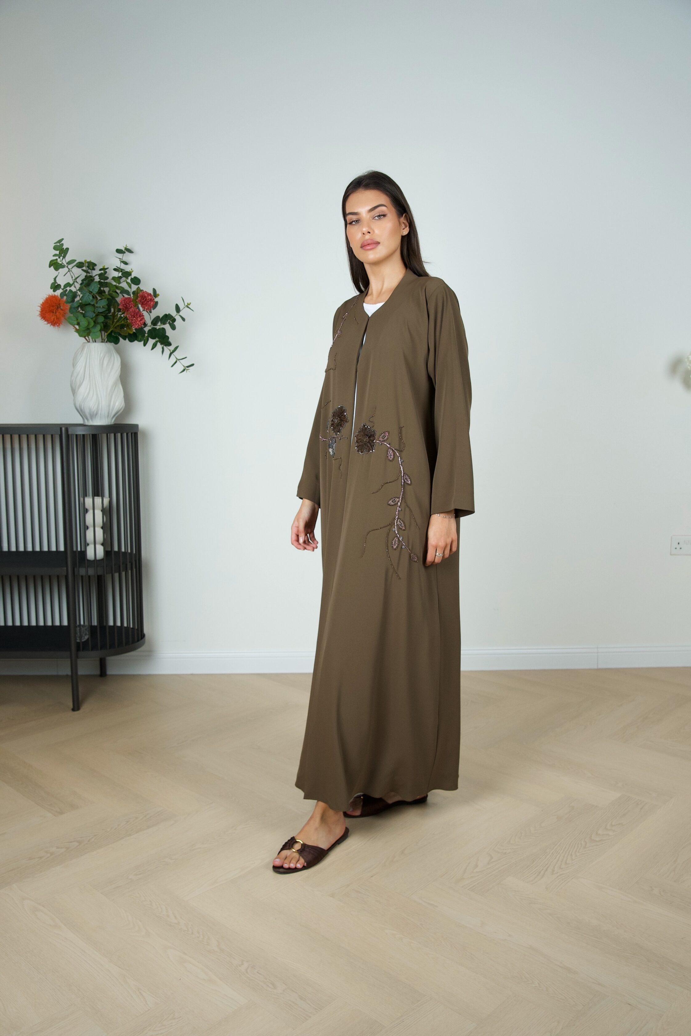 A timeless Abaya designed who women who value sophistcation. Soft crepe comfortable fabric with handwork details. Paired with a matching color Dujallail Sheila.